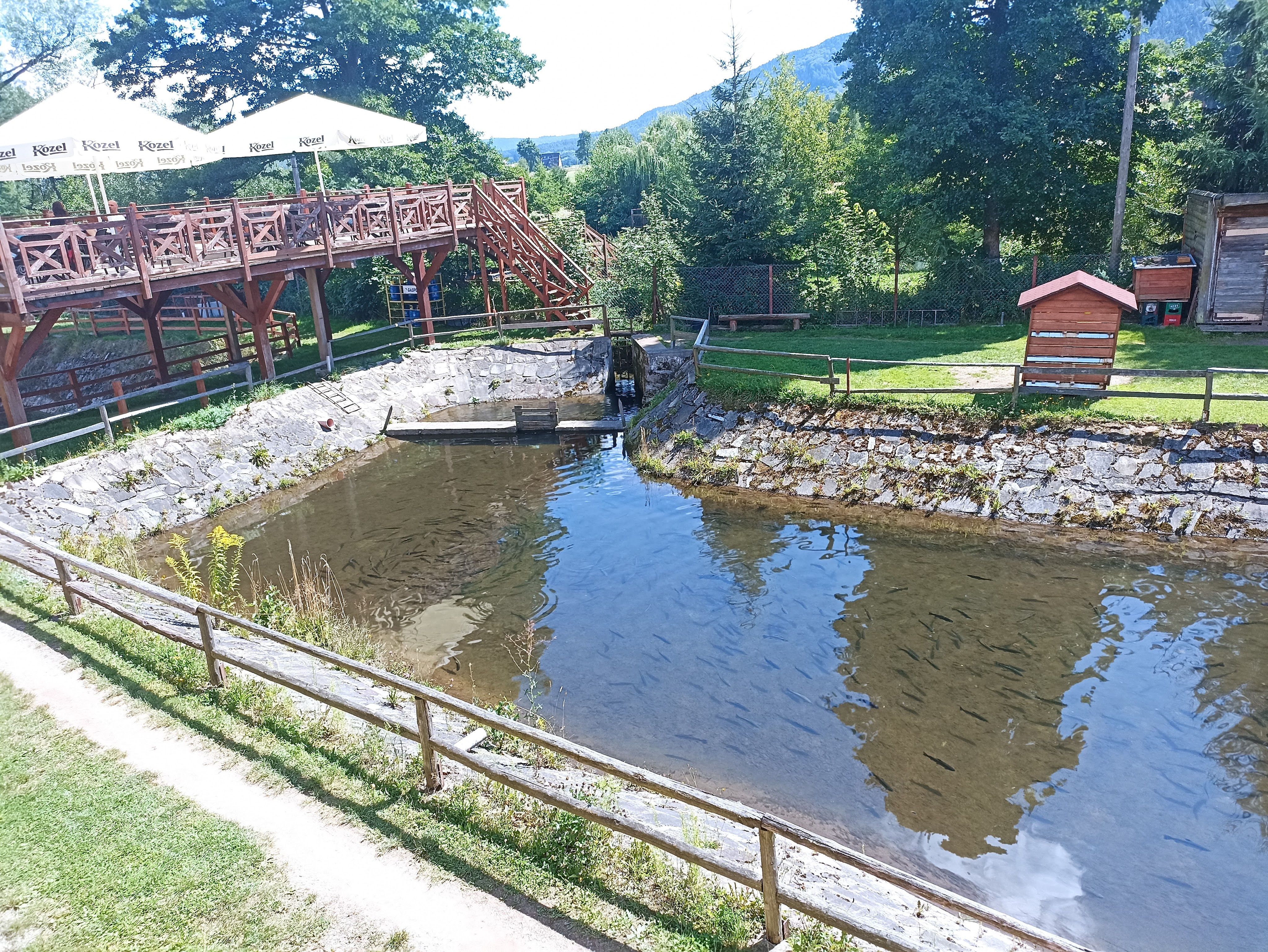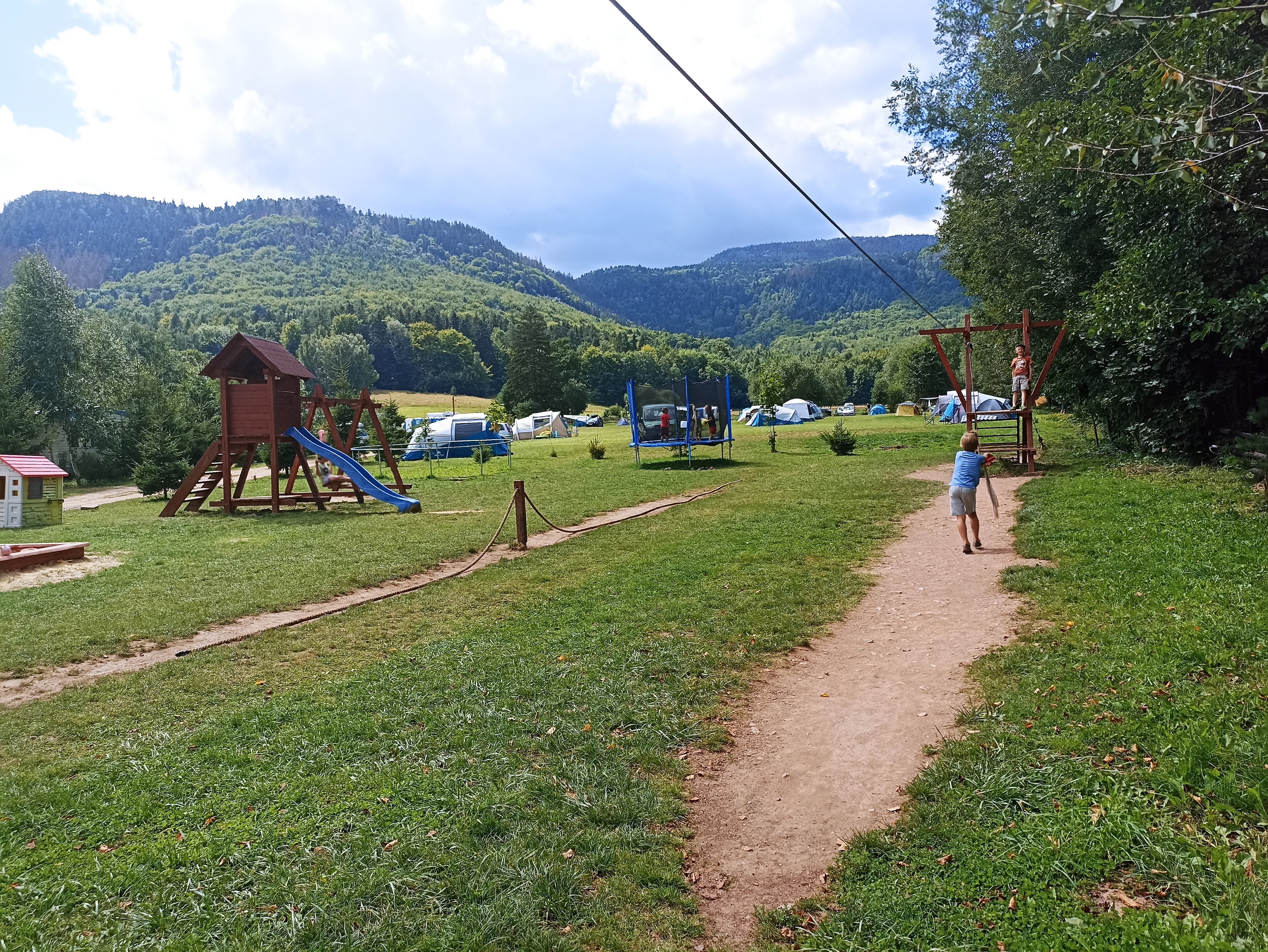 Pod wieczór dojechaliśmy do Bielawy, poprzemysłowego miasta u stóp Gór Sowich. Po dawnym przemyśle włókienniczym pozostał ogromny zbiornik wodny, który teraz służy mieszkańcom i turystom jako tereny rekreacyjne. Jest plaża, wypożyczalnia sprzętu, park wodny ze zjeżdżalniami, boiska, knajpki itp. Znajduje się tutaj również nasz kolejny kemping – OSIR Bielawa Camping Sudety.