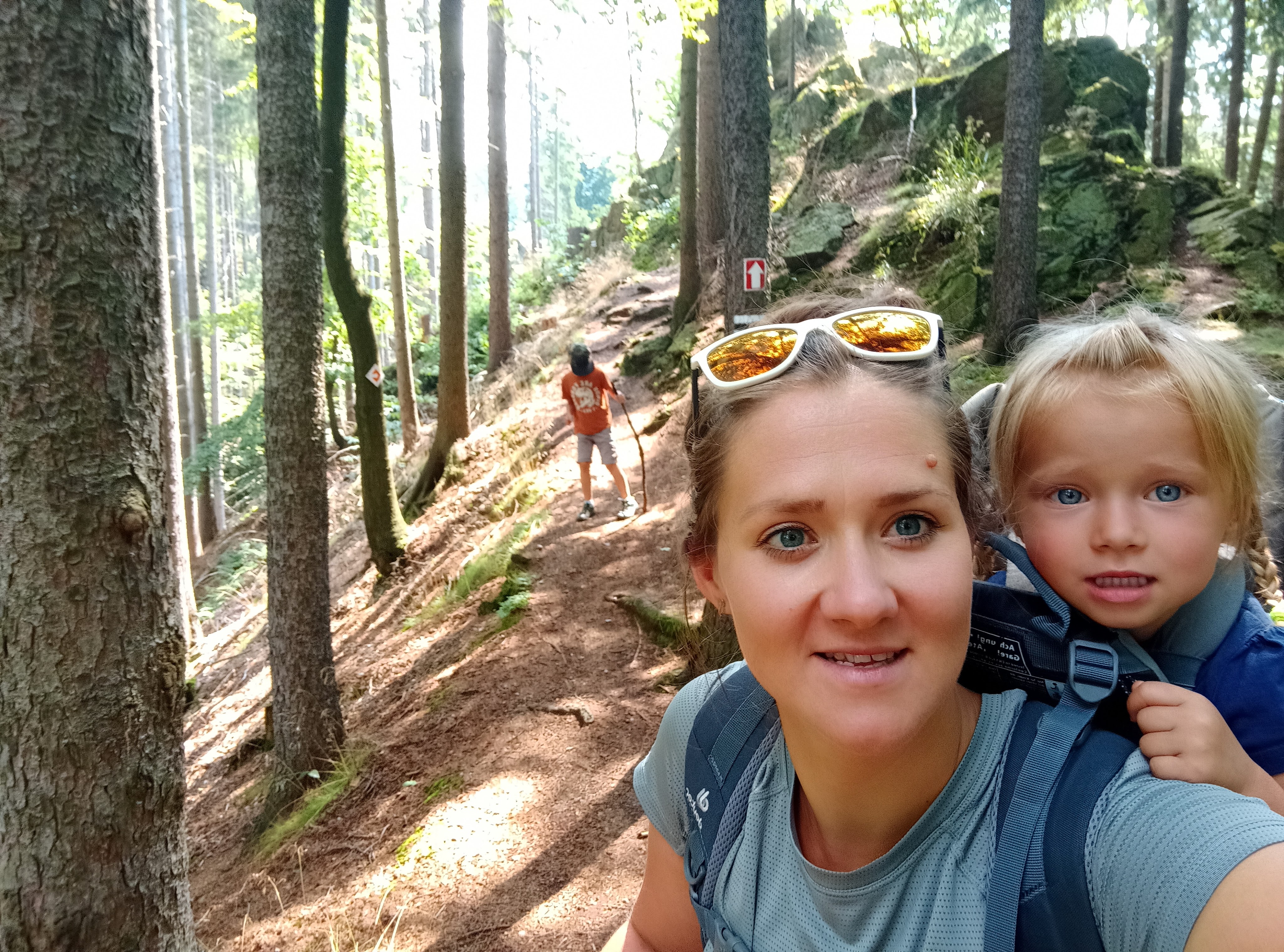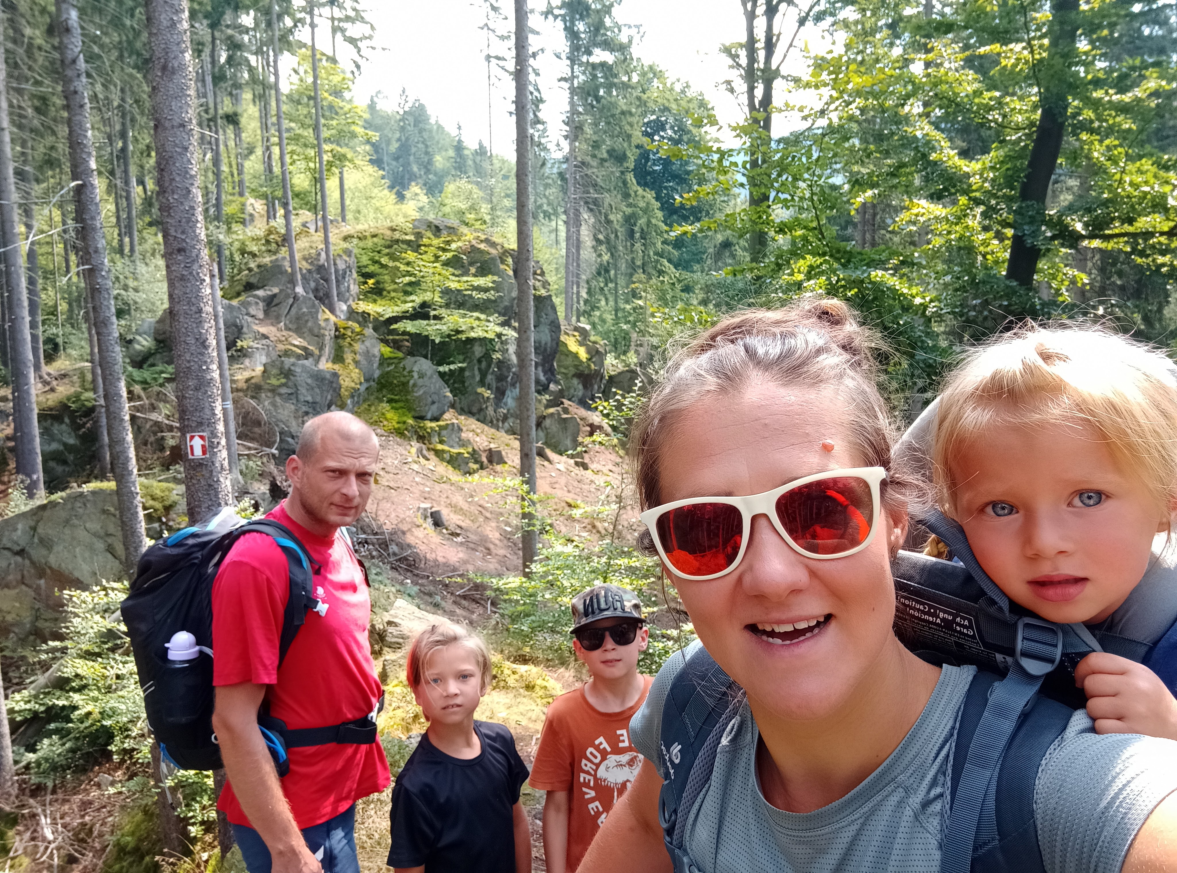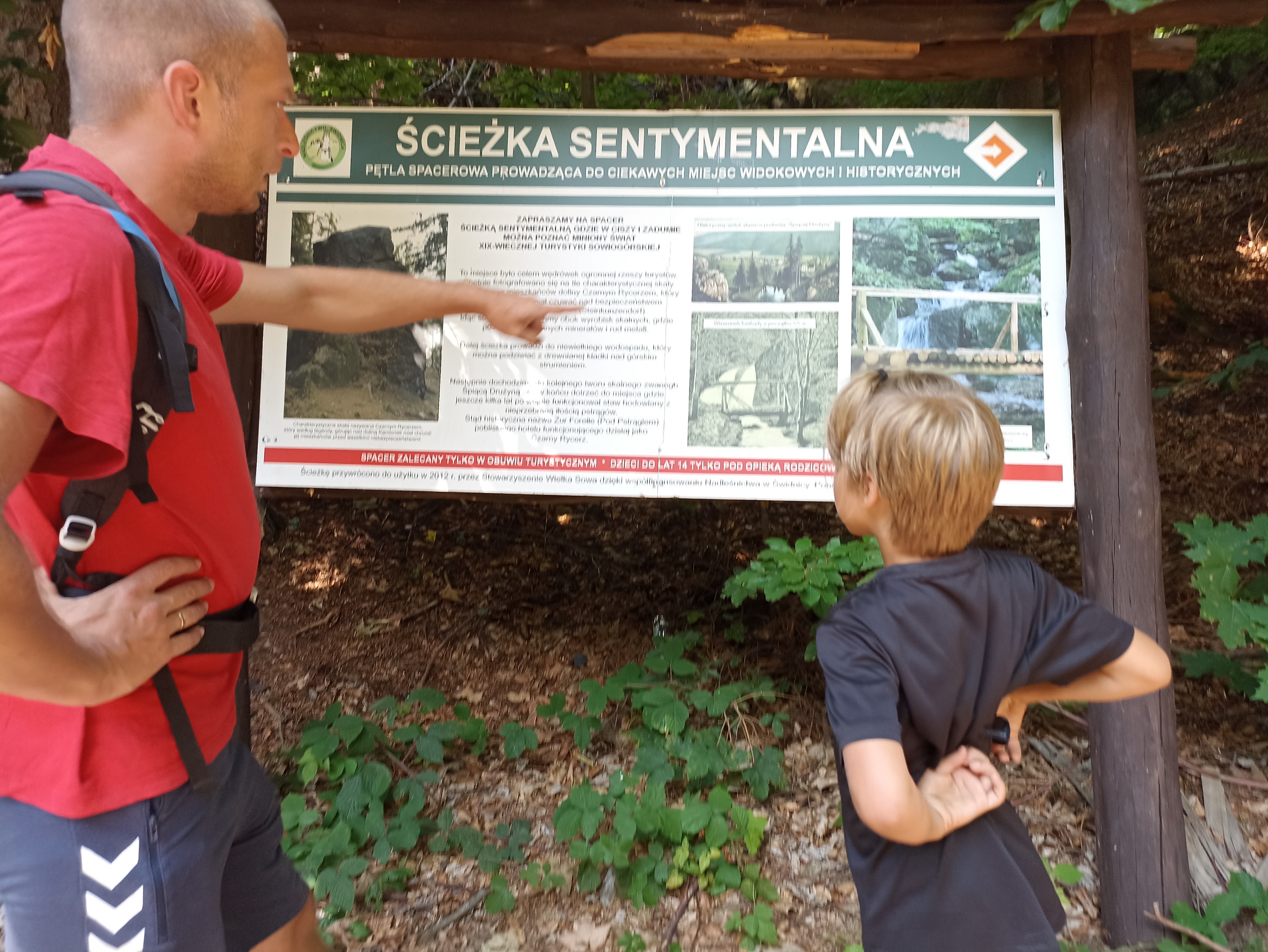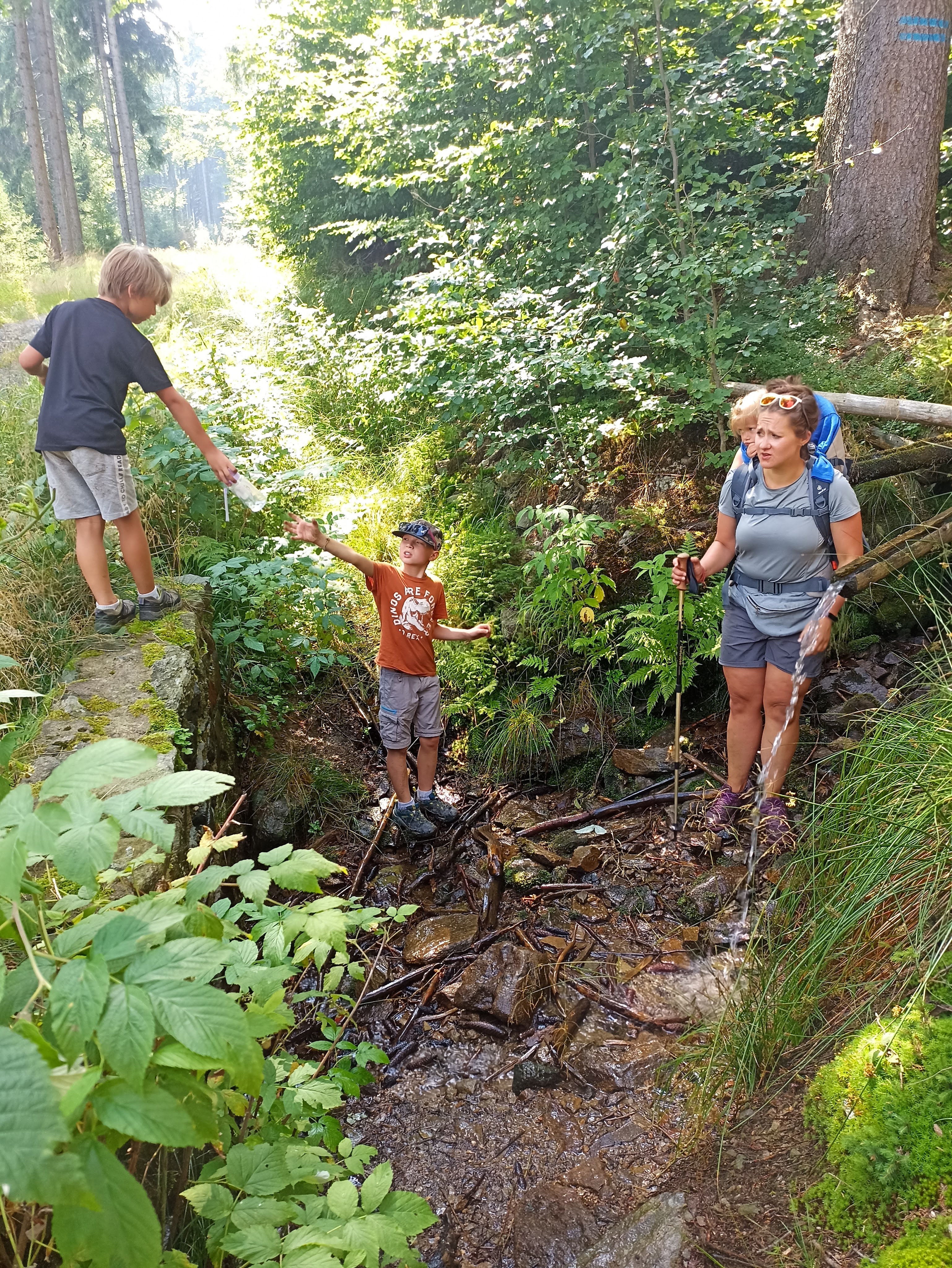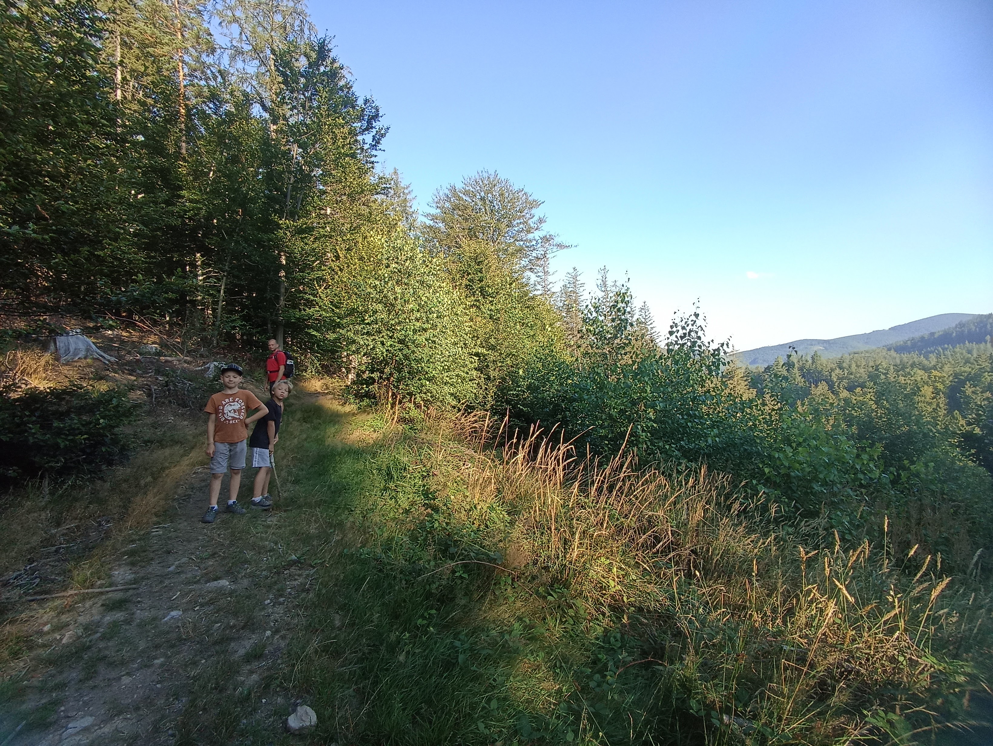 Szlak początkowo prowadził tzw. Ścieżką sentymentalną, czyli dawnymi śladami dawnych ścieżek spacerowymi turystów niegdyś wypoczywającej w Kamionkach. Odcinek ten był bardzo malowniczy, ale też dość wymagający – biegł grzbietem stromego i skalistego wypiętrzenia. Dalej droga była już znacznie łatwiejsza. Nawet napotkaliśmy potok, w którym mogliśmy uzupełnić zapasy wody. W górze tak tego nie będzie aż czuć, ale „na dole” dzisiaj tropiki – 30*C i pełne słońce.