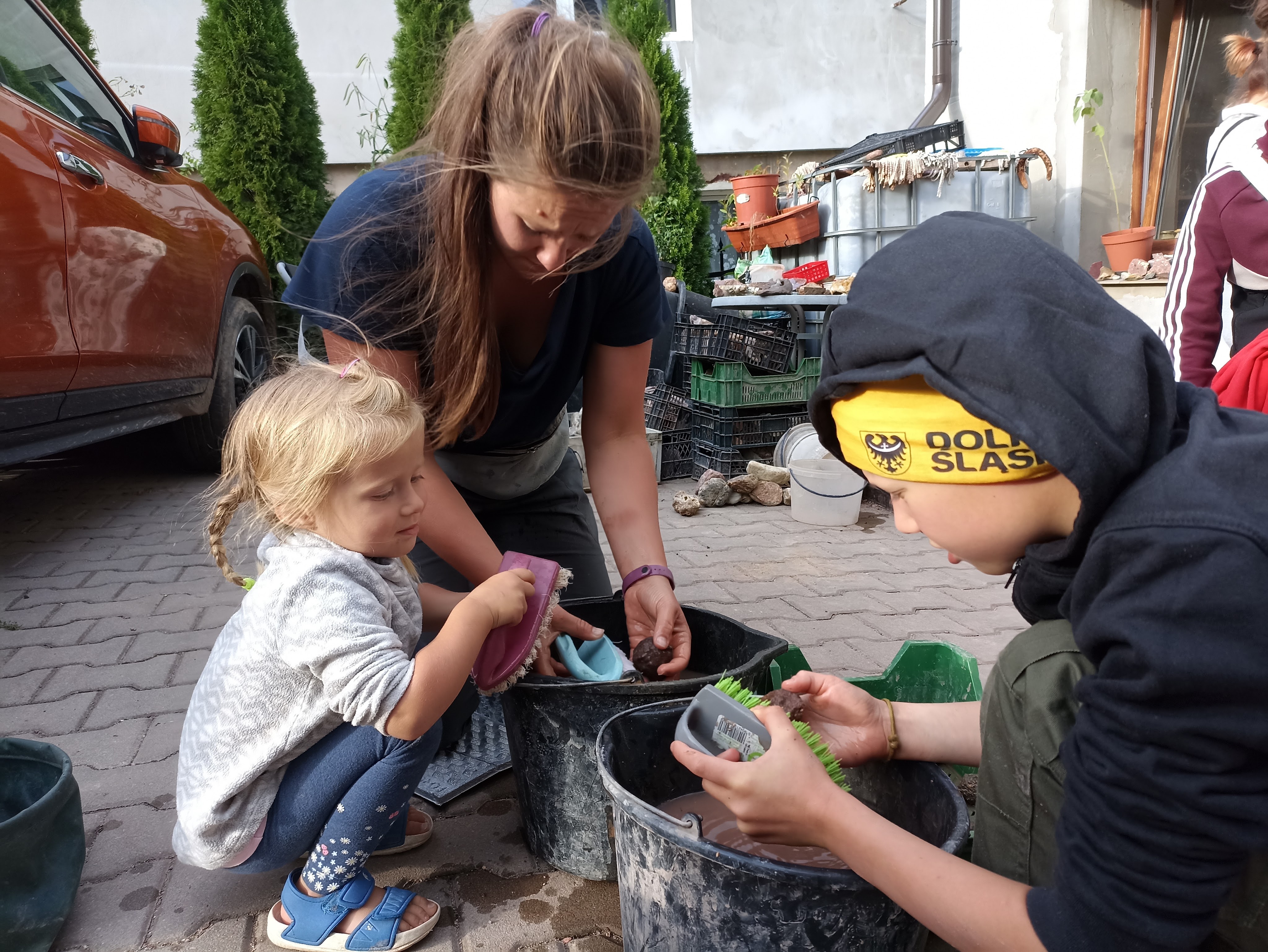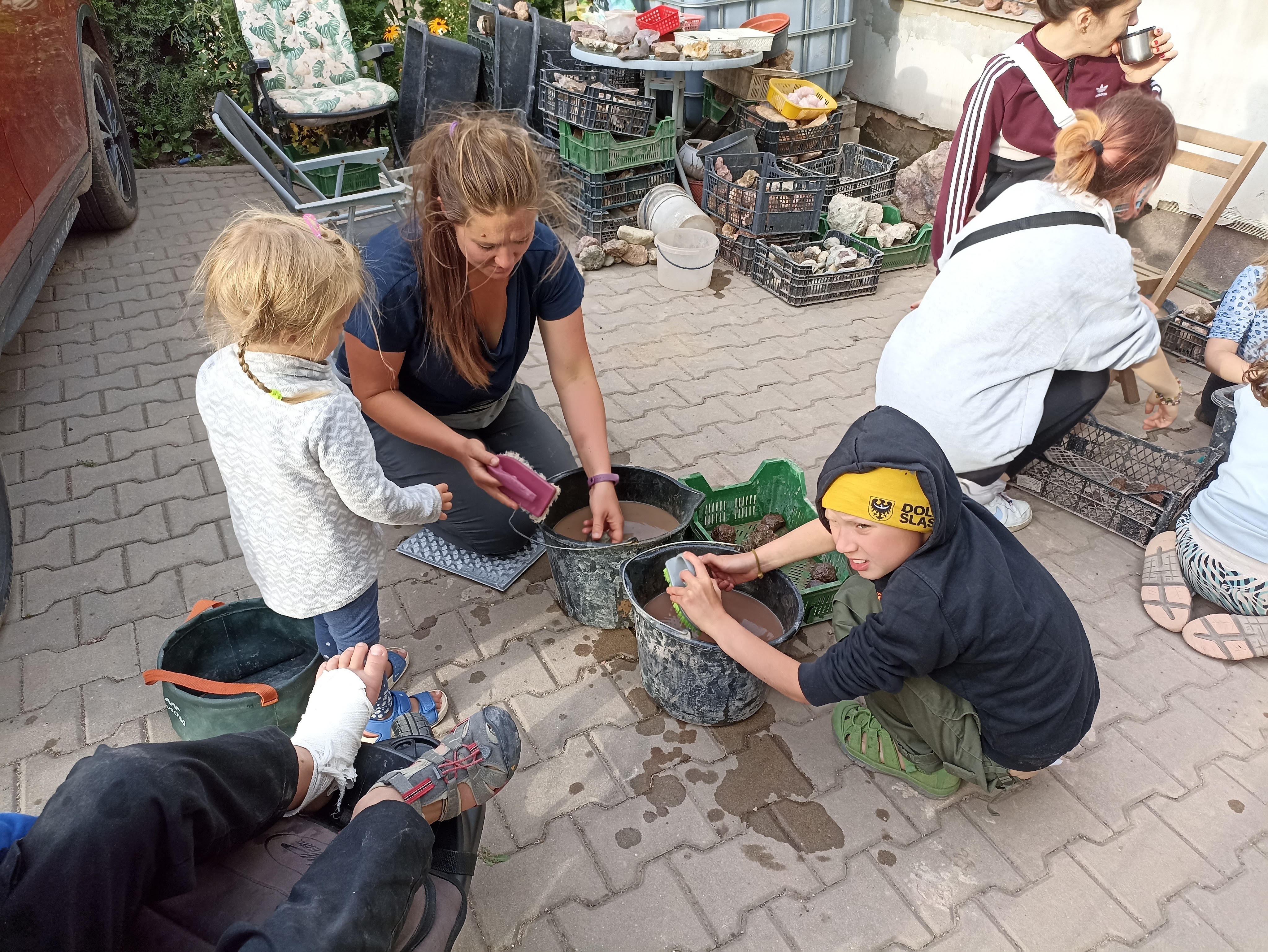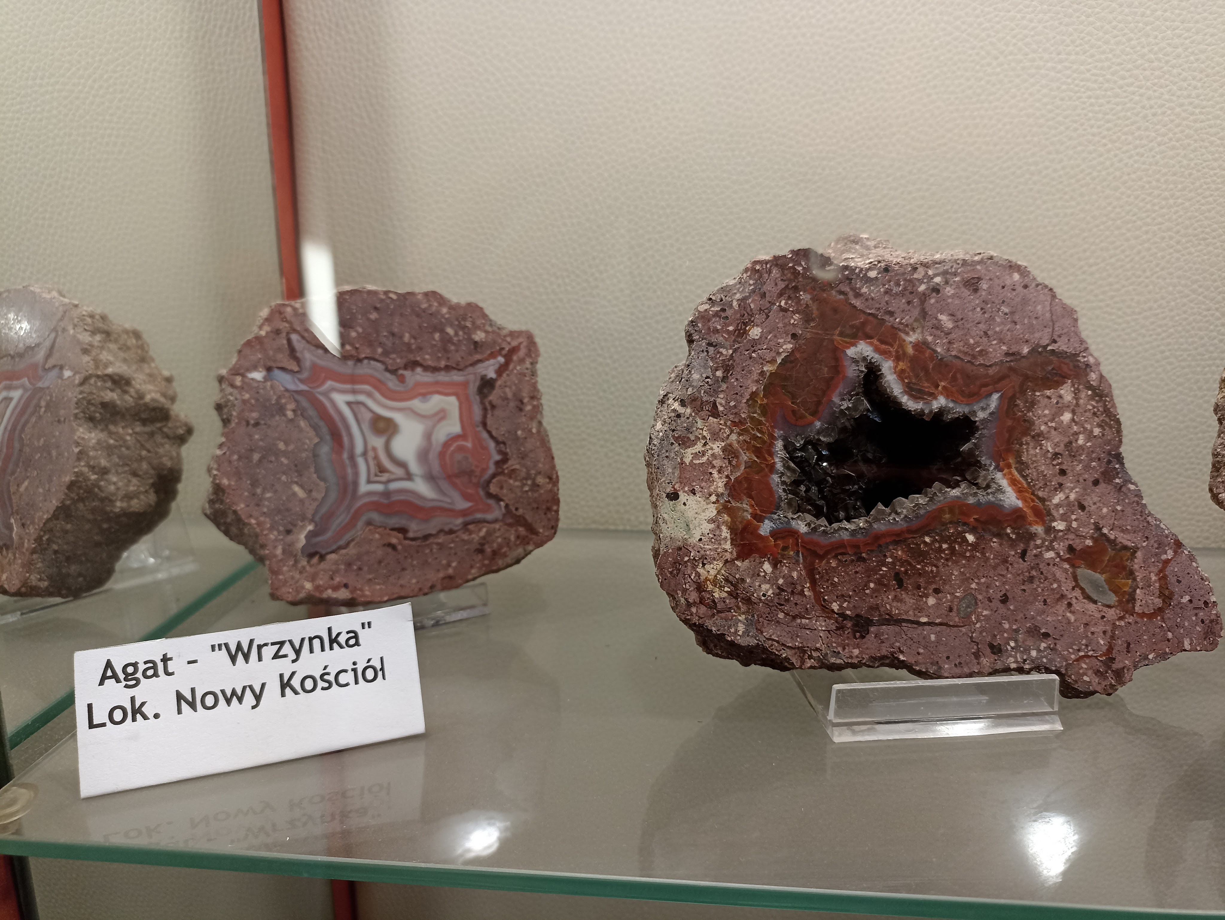 Po wizycie na zamku udaliśmy się do jednego z najsłynniejszych stanowisk mineralogicznych na Dolnym Śląsku. Nowy Kościół to niewielka miejscowość na Pogórzu Kaczawskim, która słynie z występowania pięknych agatów. Udało nam się znaleźć kilkanaście całkiem sporych okazów. Później mogliśmy prawie własnoręcznie je przeciąć i już zupełnie własnoręcznie wypolerować. Przy okazji obejrzeliśmy bogatą kolekcję lokalnego znawcy tematu oraz posłuchaliśmy o poszukiwaniu tych wspaniałych kamieni. Największy okaz, który udało się tu znaleźć, ma ponad 300 kg.