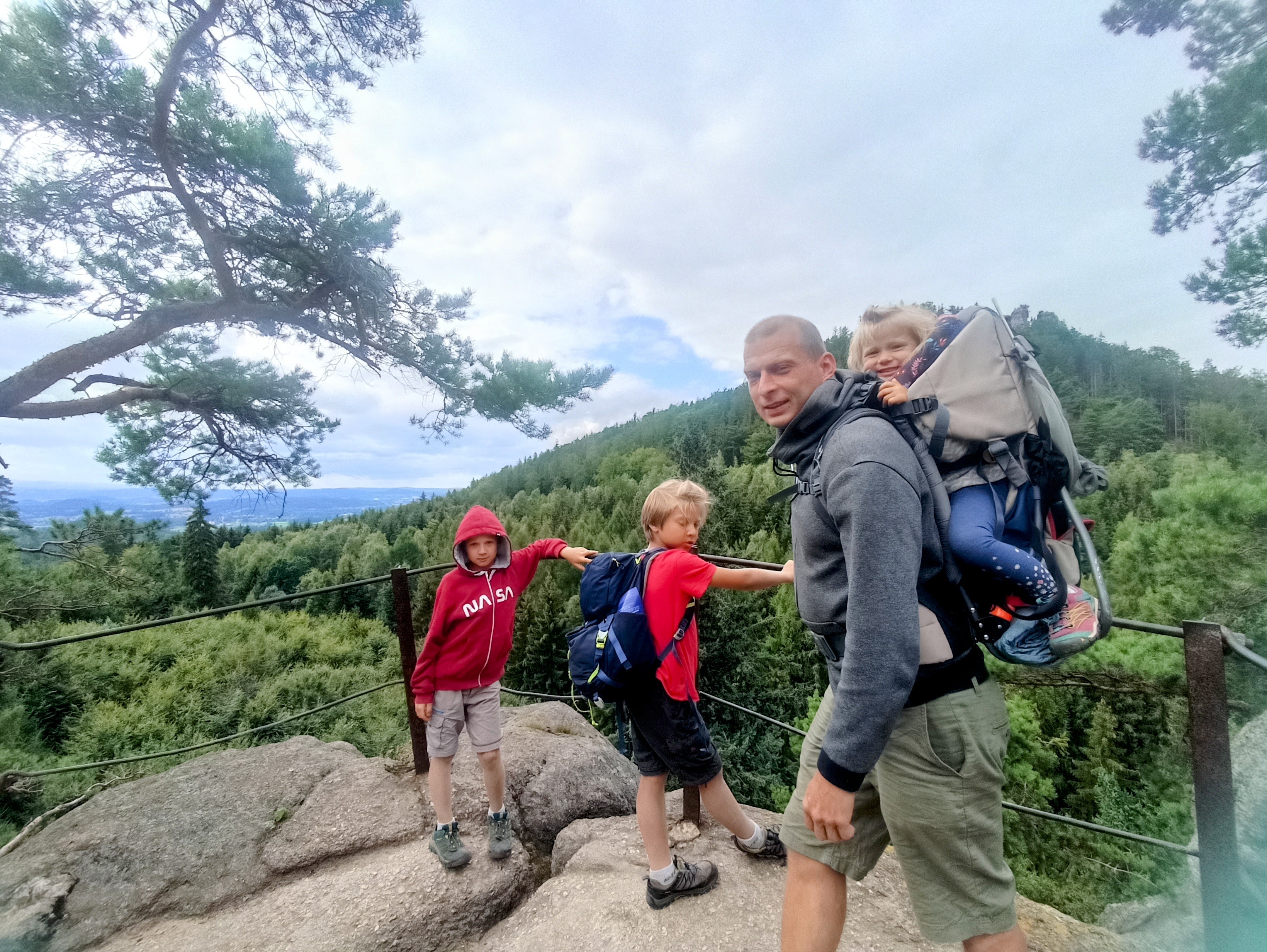 Szlak nie jest długi – w sumie całość można przelecieć w 1,5 – 2 godziny, ale nam się nie śpieszy. Zatrzymaliśmy się w klimatycznej Szwajcarce na obiad i wdrapywaliśmy się na wszystkie dostępne skałki, które napotkaliśmy po drodze.