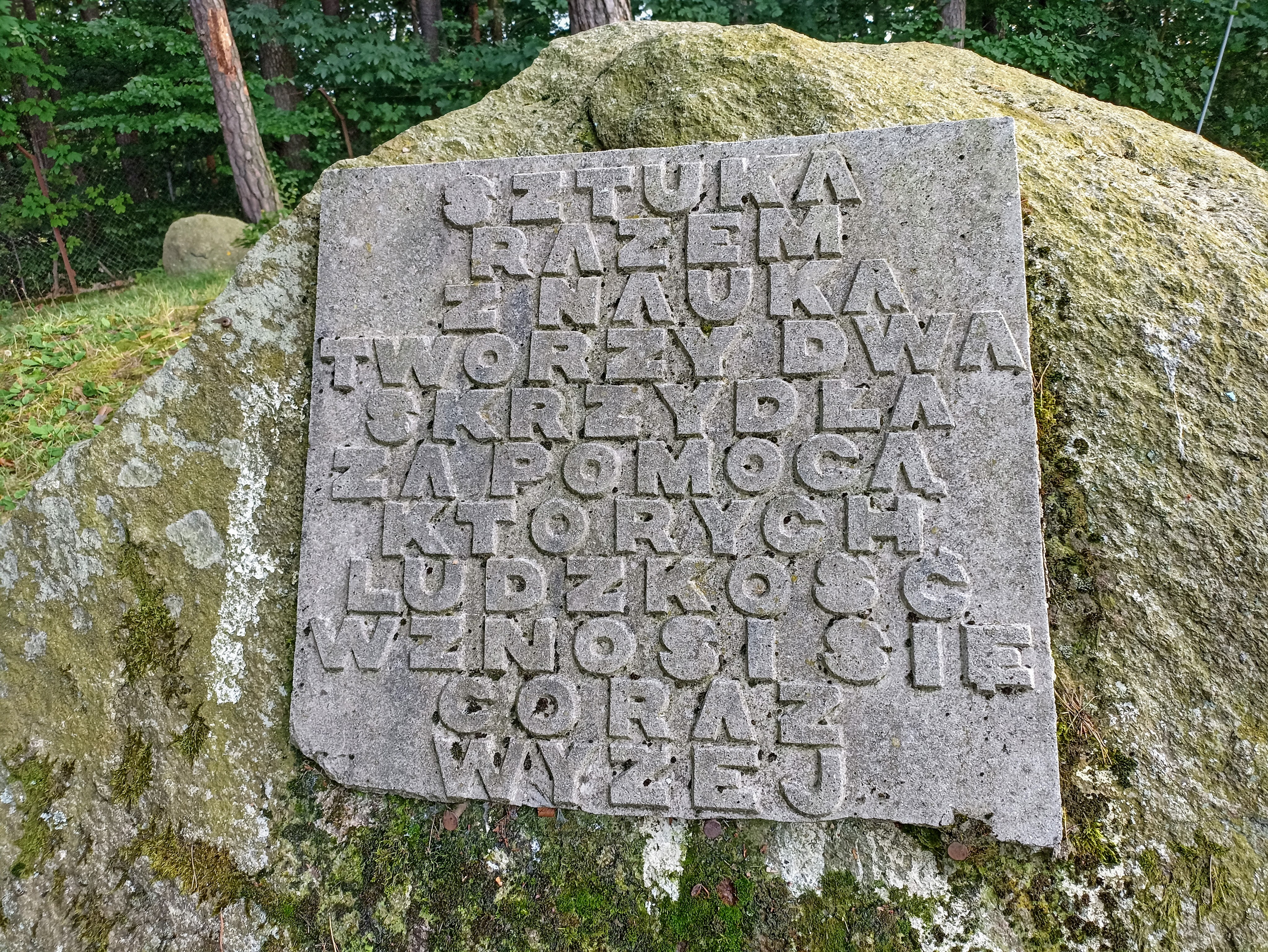 Spacerując w pobliżu tamy spotkaliśmy głaz z inspirującym motto. Nie wiem, jaka jest jego historia ani kto jest jego autorem, ale myślę, że z hasłem wyrytym na kamieniu nie sposób się nie zgodzić.