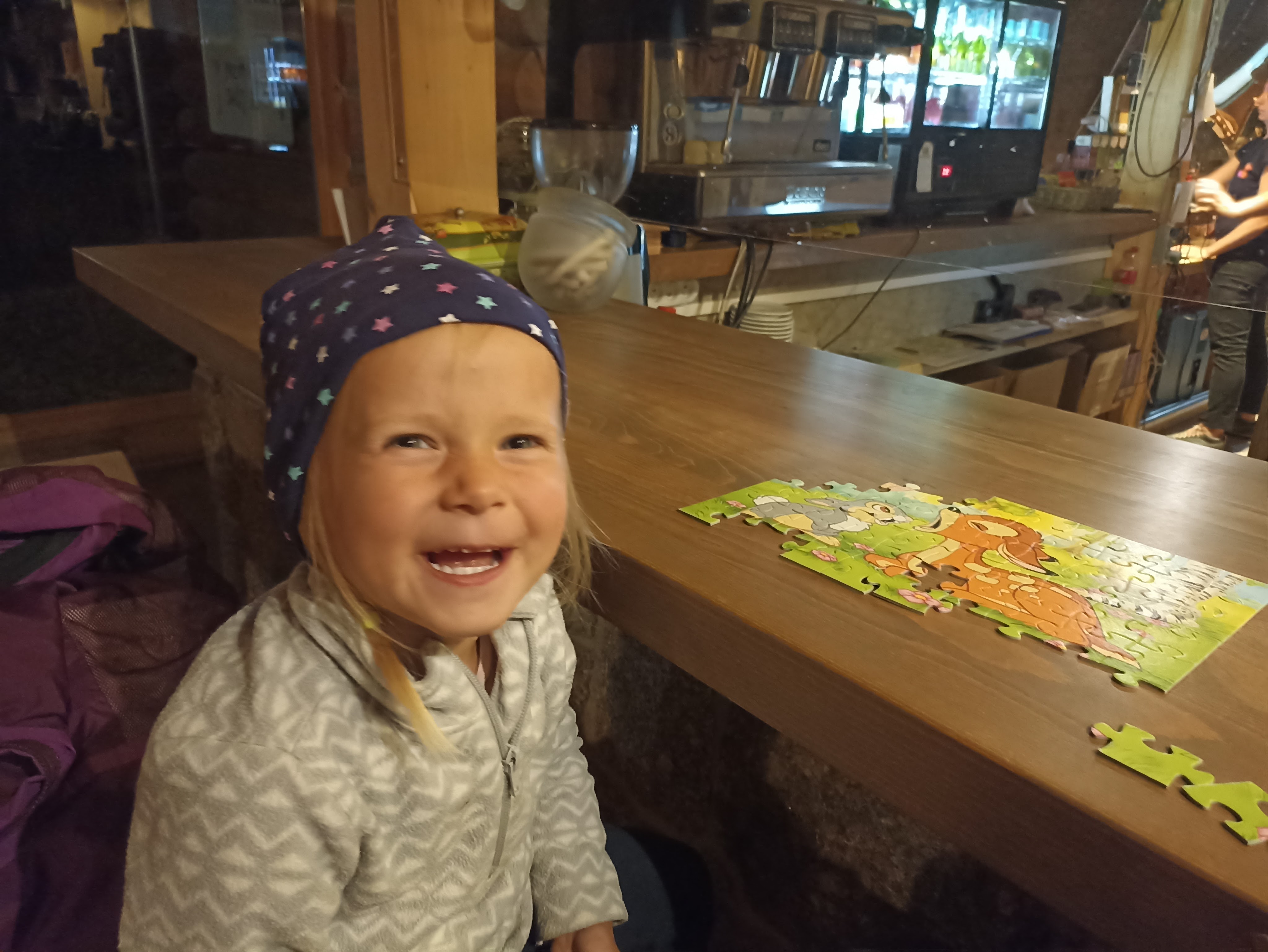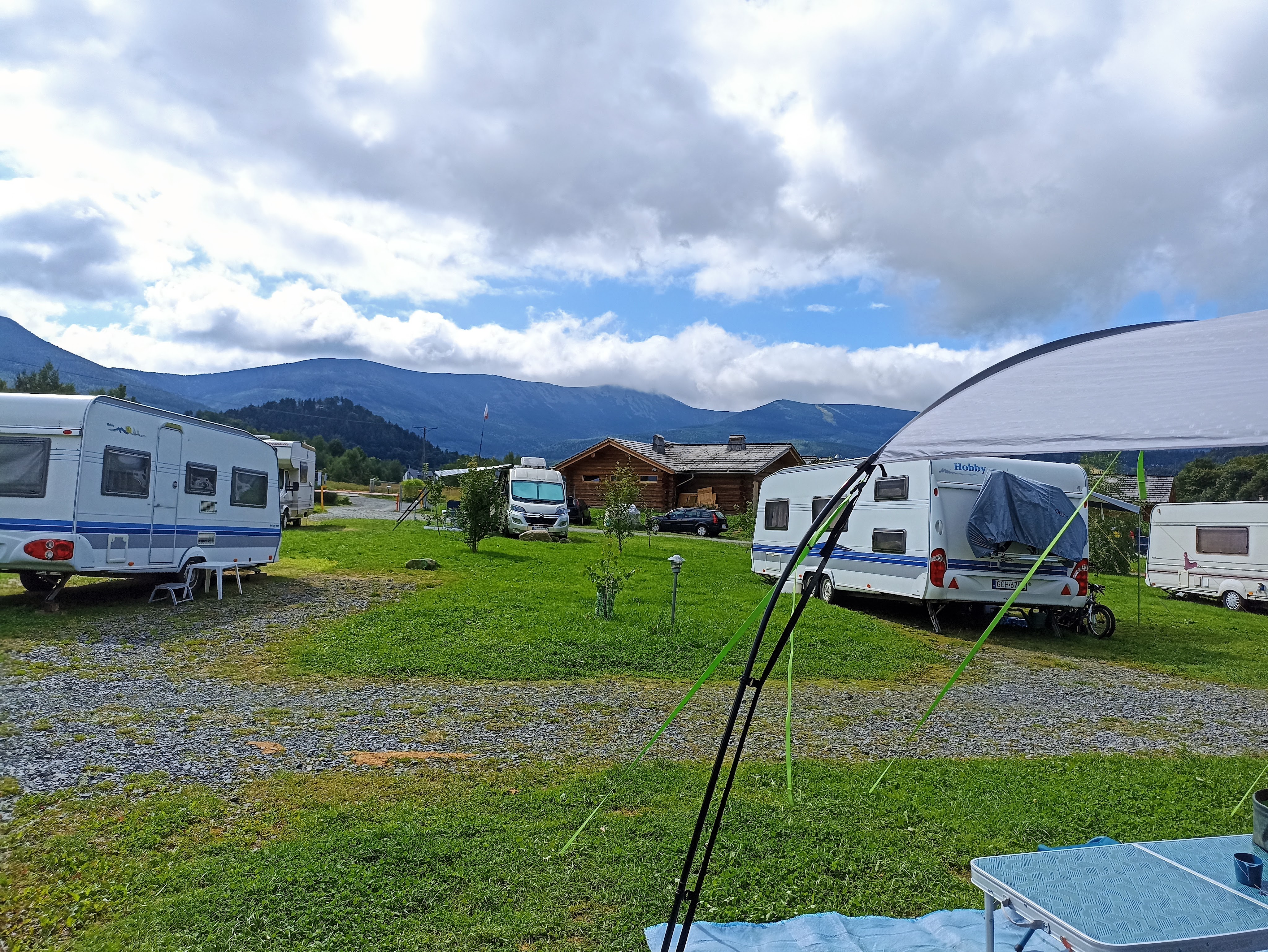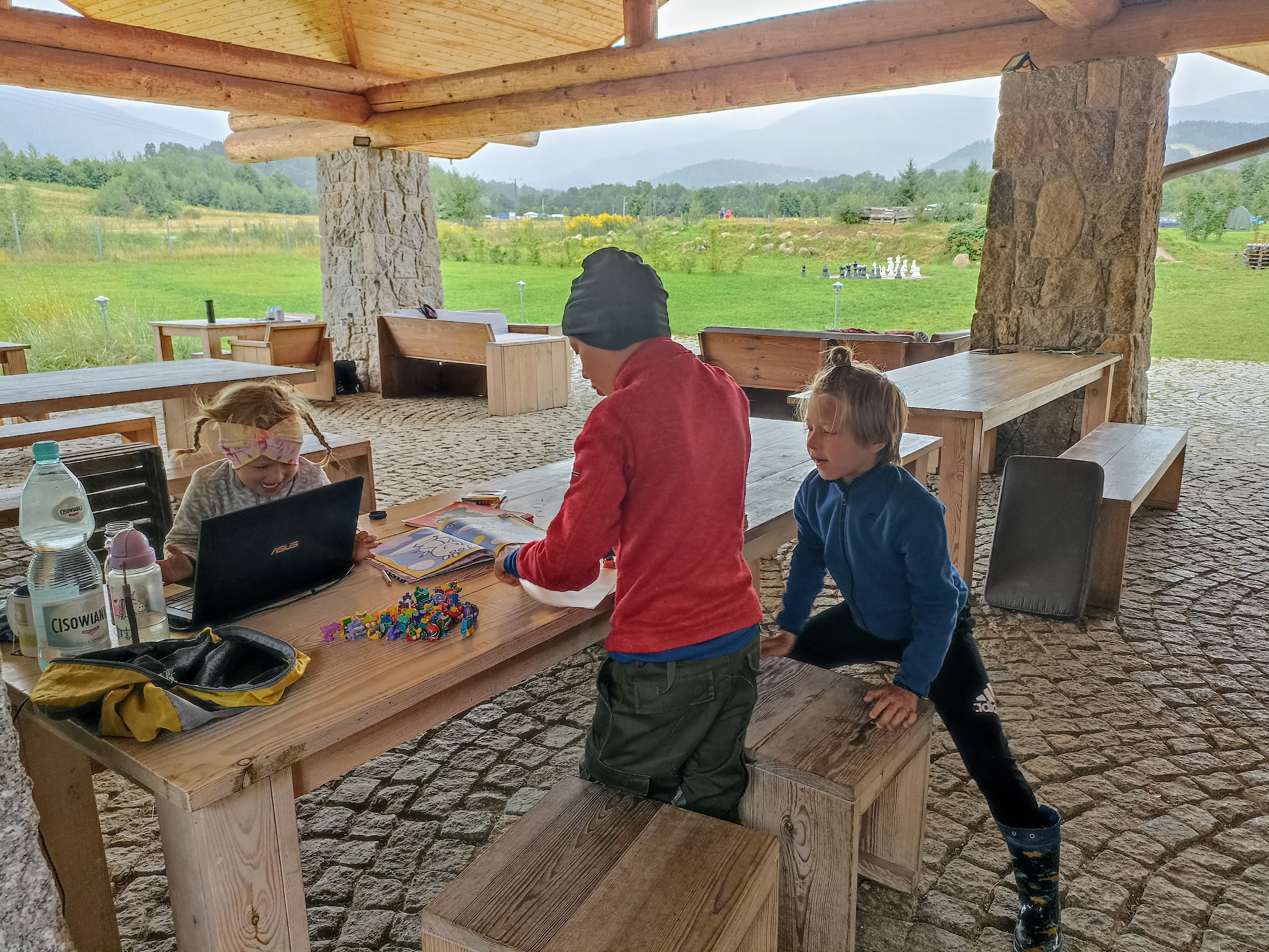 Pogoda w Karpaczu nas niestety nie rozpieszcza – zapowiada się naprawdę deszczowy tydzień. Na szczęście na naszym kempingu Camp66 jest całkiem przyzwoita infrastruktura na wypadek słabszej pogody. Jest duża kuchnia „Kamperownia” z jadalną i kącikiem zabaw, obszerny zadaszony taras z ławami i restauracja. Niestety (albo stety;)) zapowiada się, że spędzimy w tych miejscach sporo czasu, czekając na okna pogodowe, w które pozwolą nam na zwiedzanie atrakcji Karpacza i okolic.