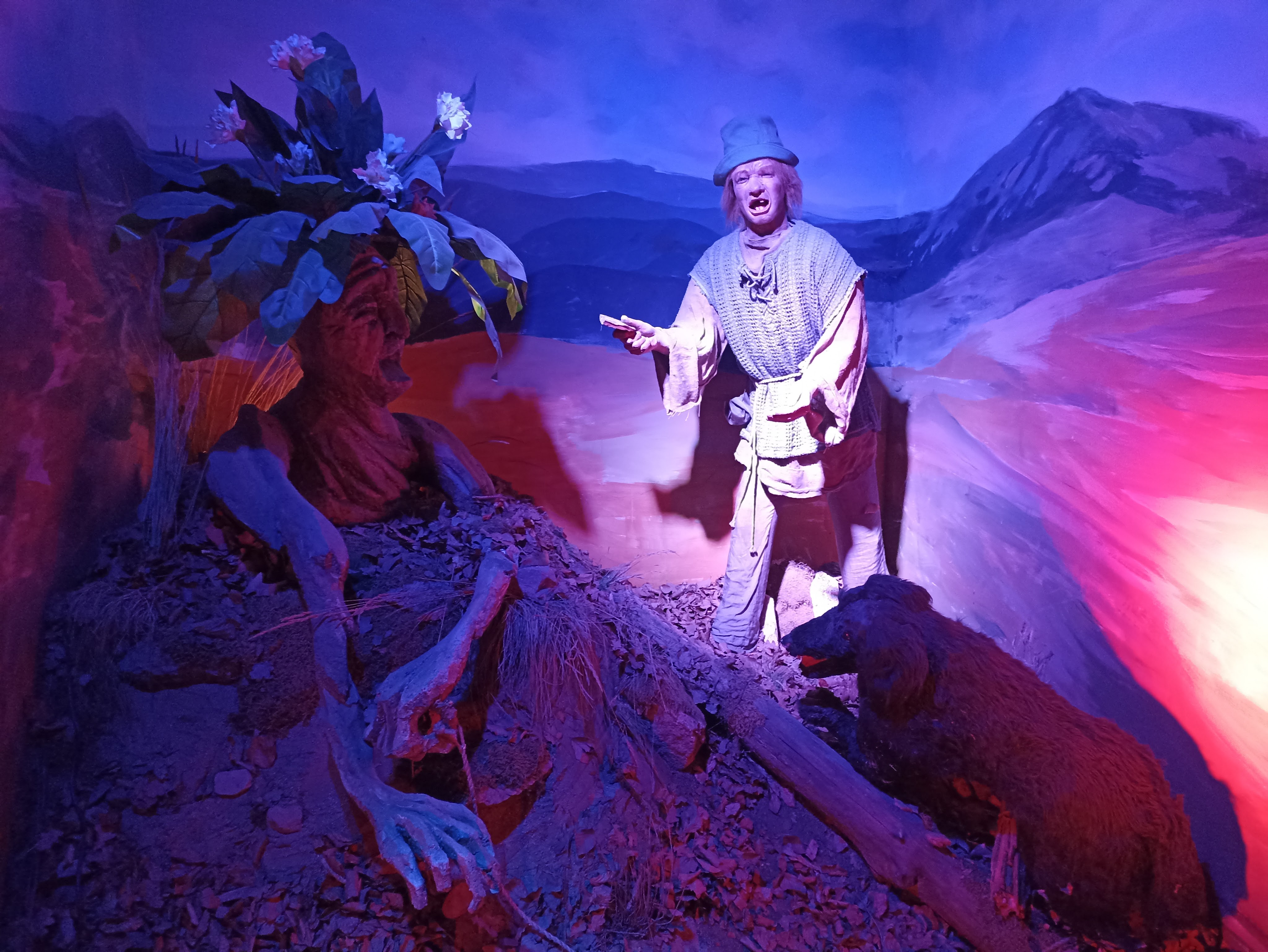 Przy wejściu na wystawę znajduję się ogromną rzeźba Władcy Karkonoszy, czyli właśnie Ducha Gór. Jak się dowiedzieliśmy, występuję on również pod innymi imionami i niektórych z nich lepiej nie wypowiadać spacerując po karkonoskich szlakach. Duch Gór bywa mściwy i bardzo nie lubi, jak się z niego drwi.