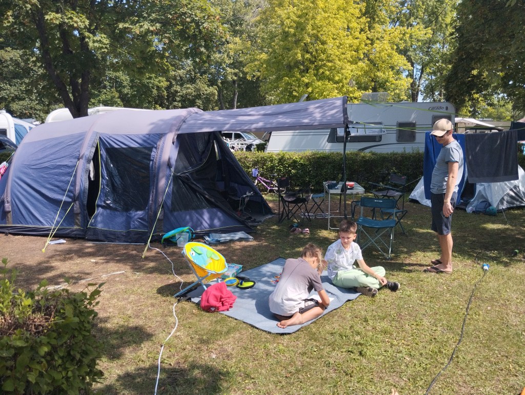Pogoda nas jednak nie rozpieszczała cały dzień, ale finalnie udało się rozbić namiot, złapać trochę słońca, pobawić się w basenie. To był dobry, długi dzień.