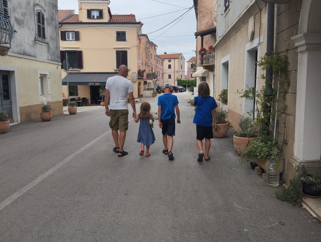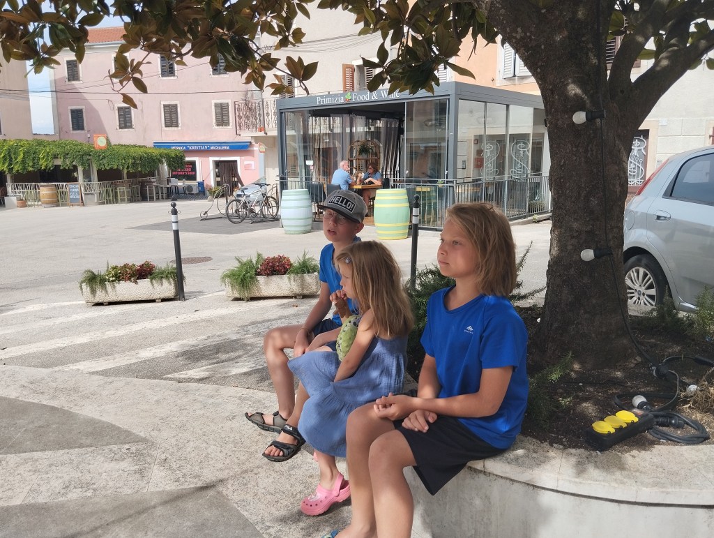 Po zwinięciu namiotu odświeżamy się jeszcze w kempingowych basenach i ruszamy w poszukiwaniu bardziej chorwackiej Chorwacji. Na początek szybki obiad w pobliskim miasteczku.