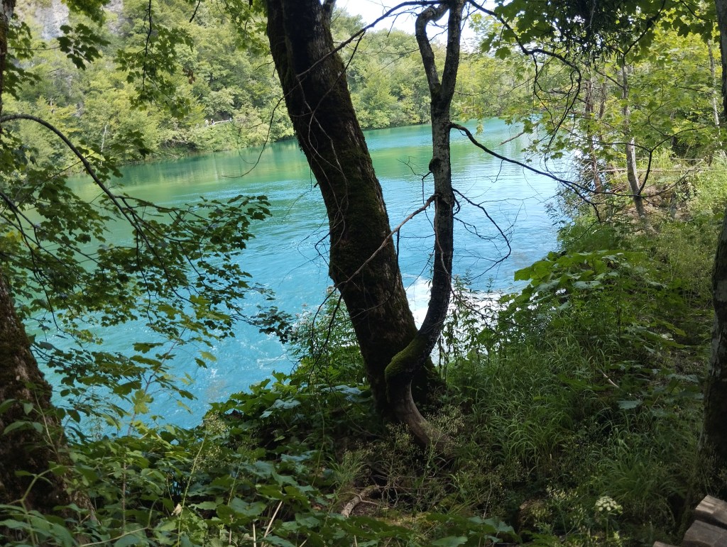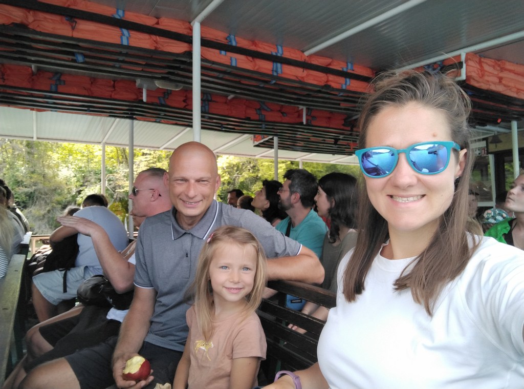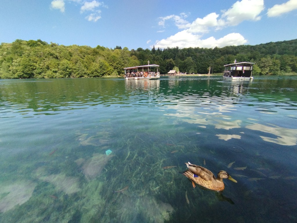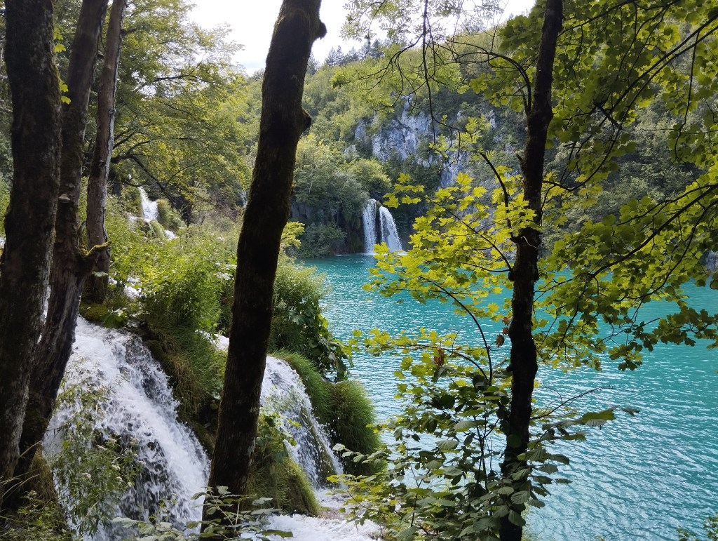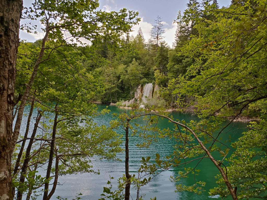 Do wielkiego wodospadu musieliśmy stać w regularnej kolejce na dobre kilkanaście minut! Ale w sumie było warto! Oczywiście lepiej byłoby przyjechać w mniej turystycznym terminie (podobno Plitwickie Jeziora wyglądają magicznie jesienią, gdy okoliczne lasy zmieniają kolor na pomarańczowo-czerwoną paletę), ale jesteśmy teraz i aż grzech byłoby tego nie zobaczyć.