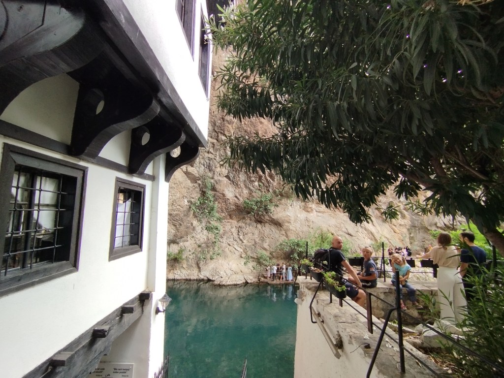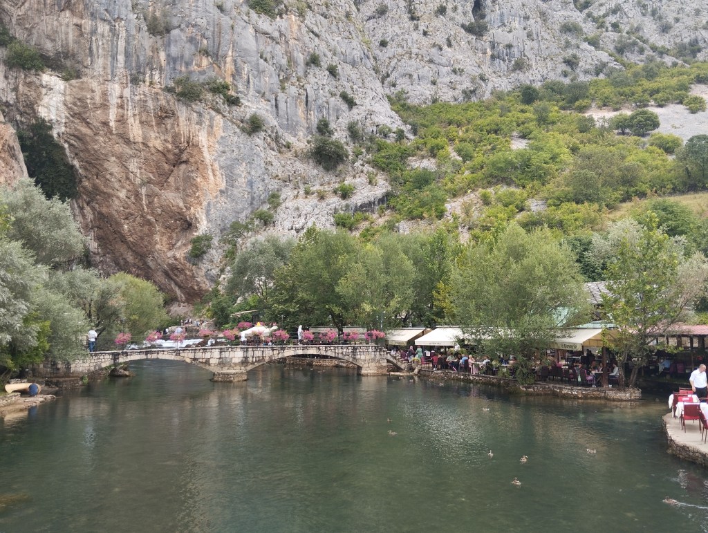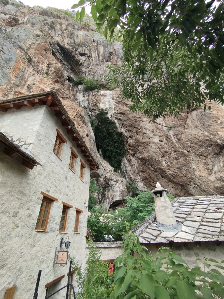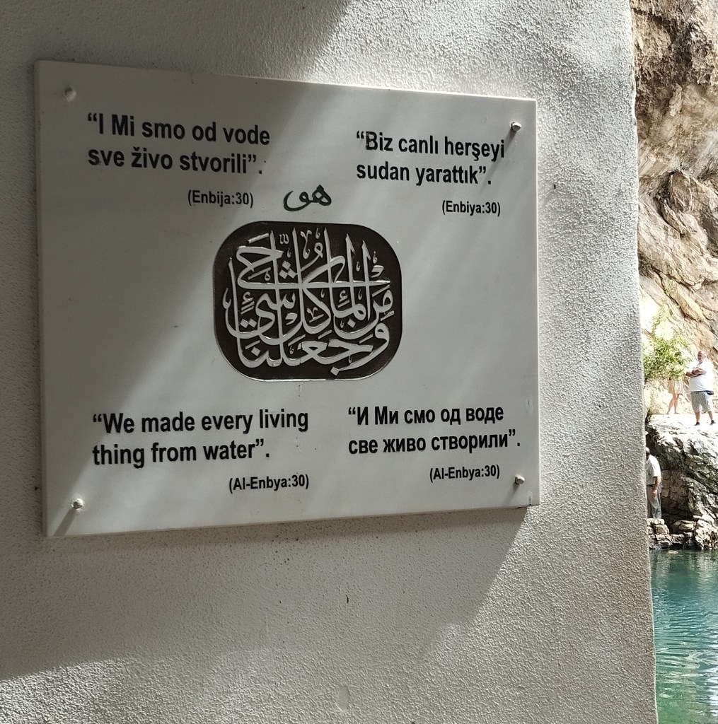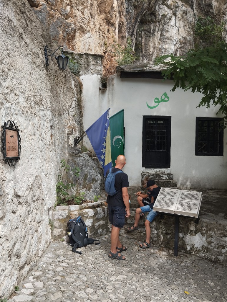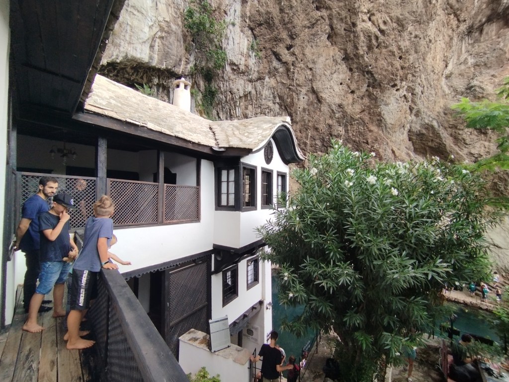 Nazajutrz idziemy spacerem do najważniejszego zabytku Blagaju – Tekki Derwiszy. Derwisze to muzułmańskie bractwo, w świecie chyba najbardziej znani jako zakon tańczących mnichów. Ci z Blagaju nie tańczą i w zasadzie już ich tu w ogóle już nie ma, ale pozostawili po sobie niezwykłe miejsce – tekkę, czyli klasztor. Miejsce to znajduje się na końcu miejscowości tuż przy źródle rzeki Buny. Buna podobnie, jak Gacka w Chorwacji, nie zaczyna się jako marny strumyczek, lecz od razu jako „pełnowymiarowa” rzeka, wypływająca wprost ze skały (z wywierzyska Buny, czyli Vrelo Bune).