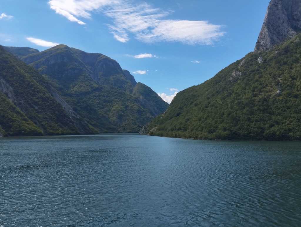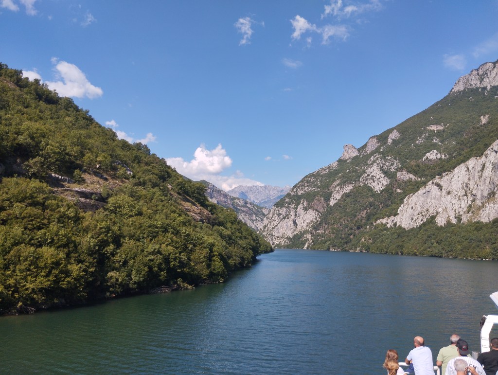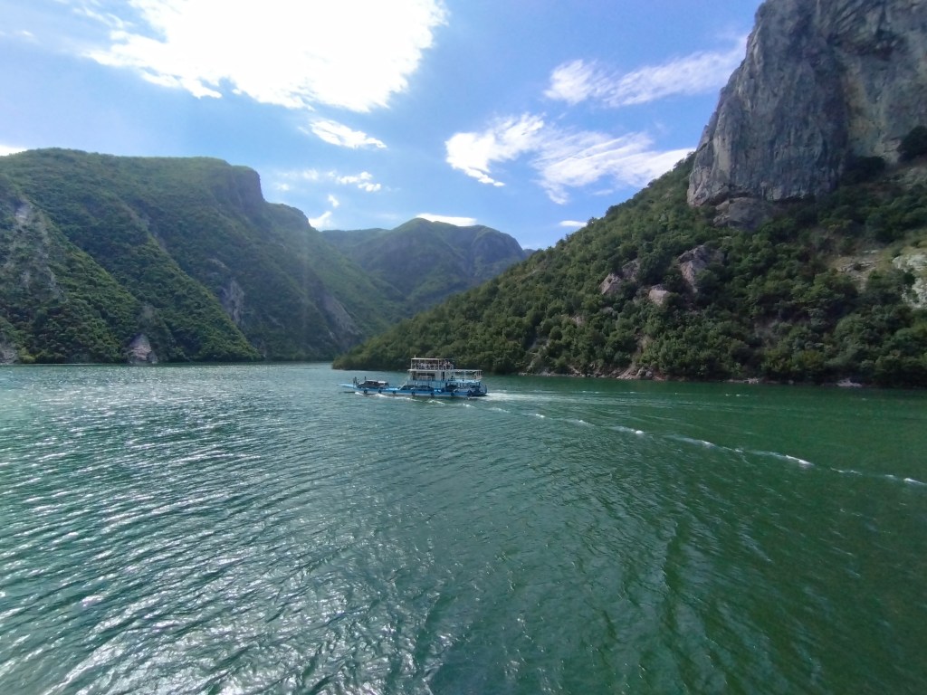 Przyczyna jest prosta – na tych terenach nie ma ani jednej osiągalnej dla jakikolwiek samochodu (nawet terenowego) drogi. Także zabudowania te są dostępne jedynie od wody. Dużo osób porównuje jezioro Komani to norwerskich fiordów. I faktycznie, coś w tym jest! Z tą różnicą, że jest dobre 25 stopni więcej i na najwyższym pokładzie promu właśnie rozkręca się „potańcówka” do albańskiej muzyki.