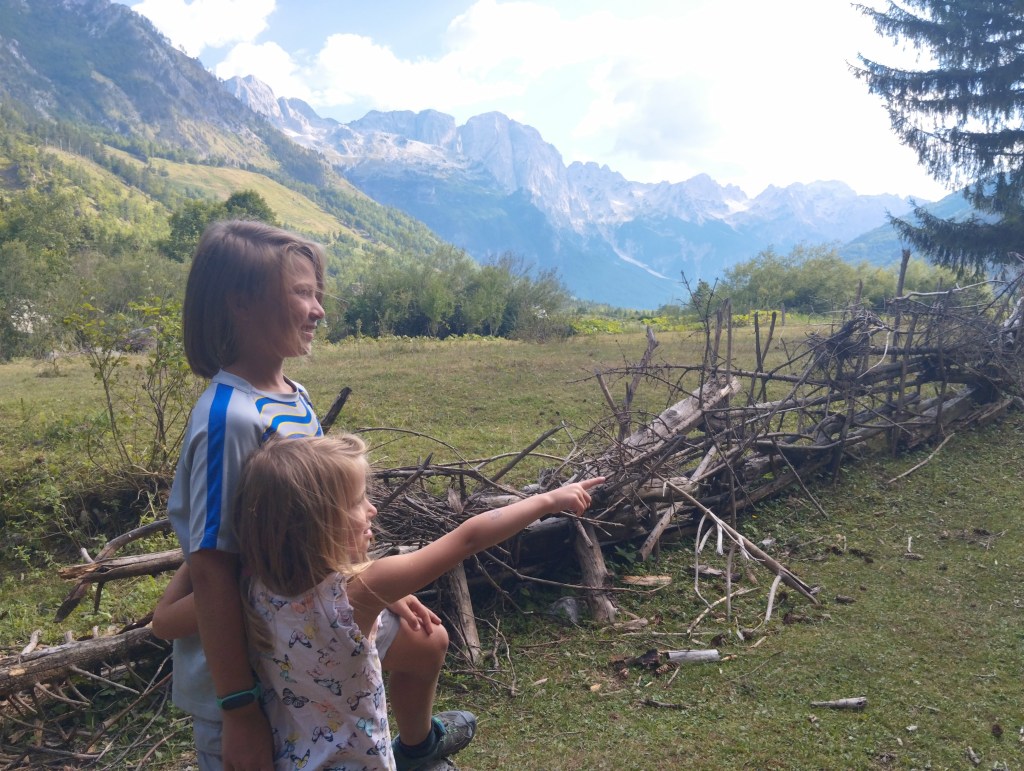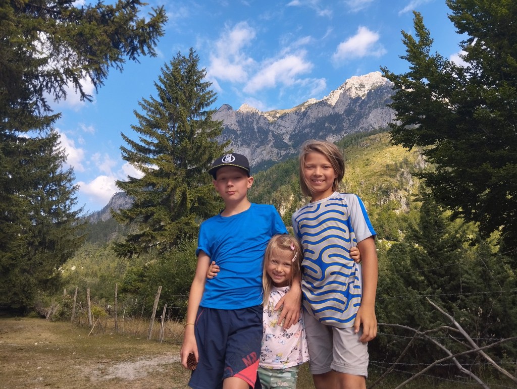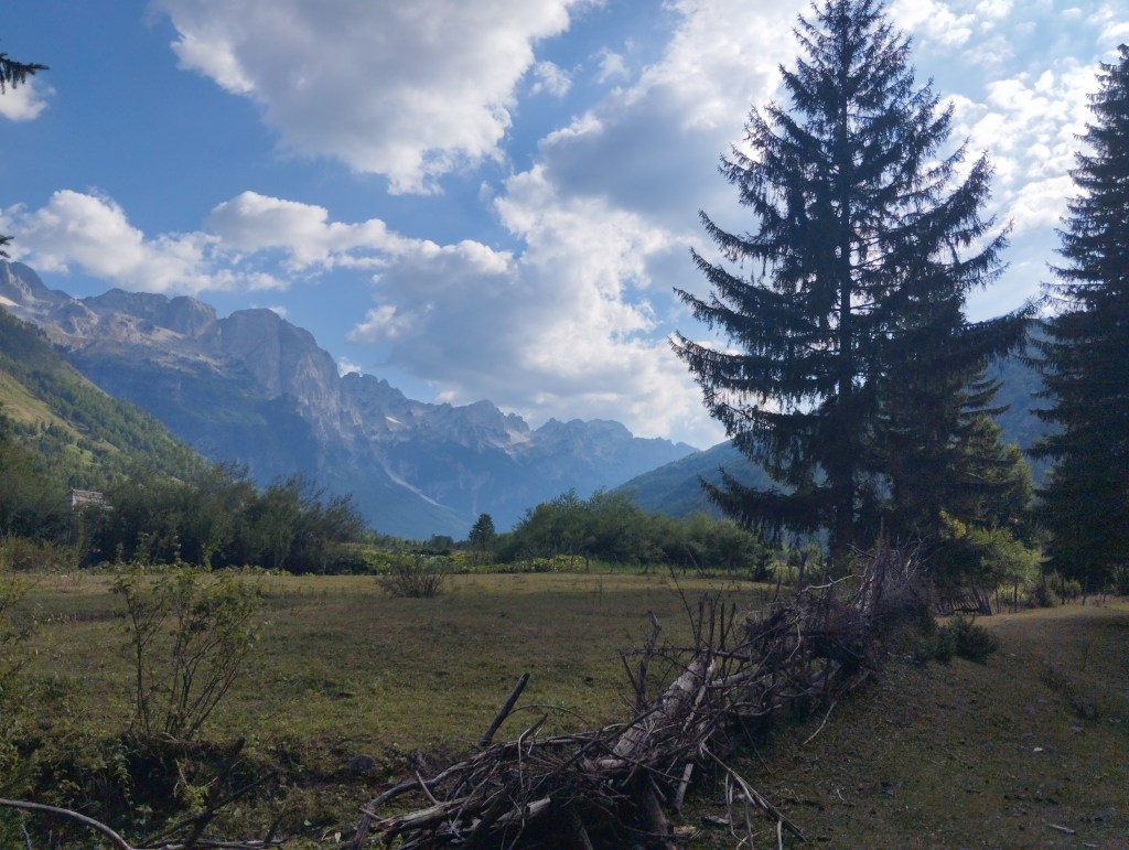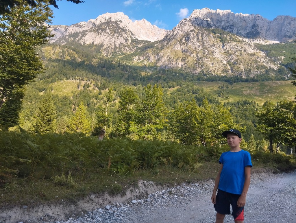Jak już wiecie, postanowiliśmy zatrzymać się w sercu Gór Przeklętych* – w Parku Narodowym Doliny Valbony. Warunek był w zasadzie tylko jeden – nie idziemy nigdzie wysoko w górę. Z resztą już na pierwszy rzut oka widać, że te góry to nie przelewki. Wysokie, strzeliste, kamieniste wyglądały wspaniale, ale wędrówka po nich nie byłaby najłatwiejsza. Na wysokogórską wspinaczkę nie byliśmy przygotowani ani technicznie, ani psychicznie. Skoro nie planowaliśmy zdobywać szczytów, mogliśmy skupić się na otaczającej nas przyrodzie. Zielone polany, płynąca rzeka i widok na okoliczne wzniesienia sprawiły, że czuliśmy się jak w bajce. Już same widoki z dołu doliny dostarczały bardzo miłych górskich wrażeń.