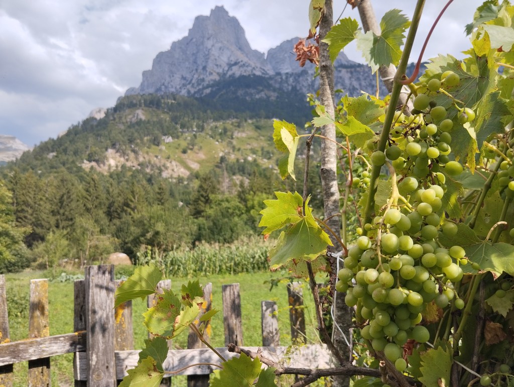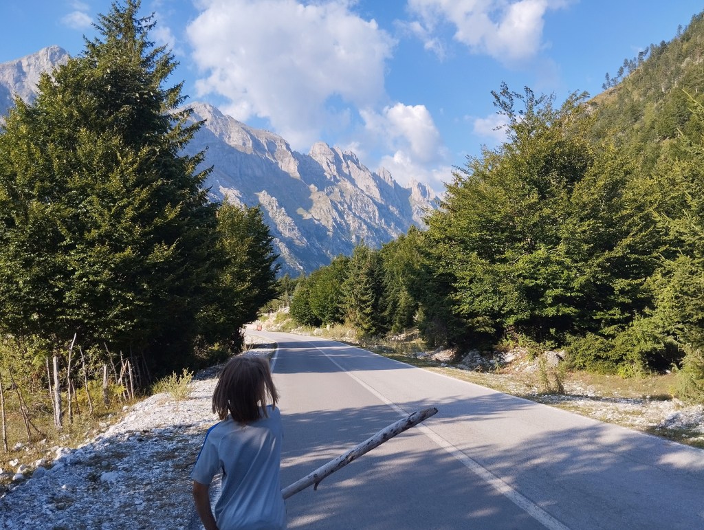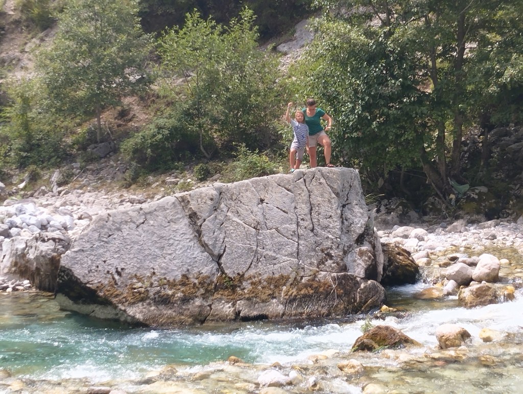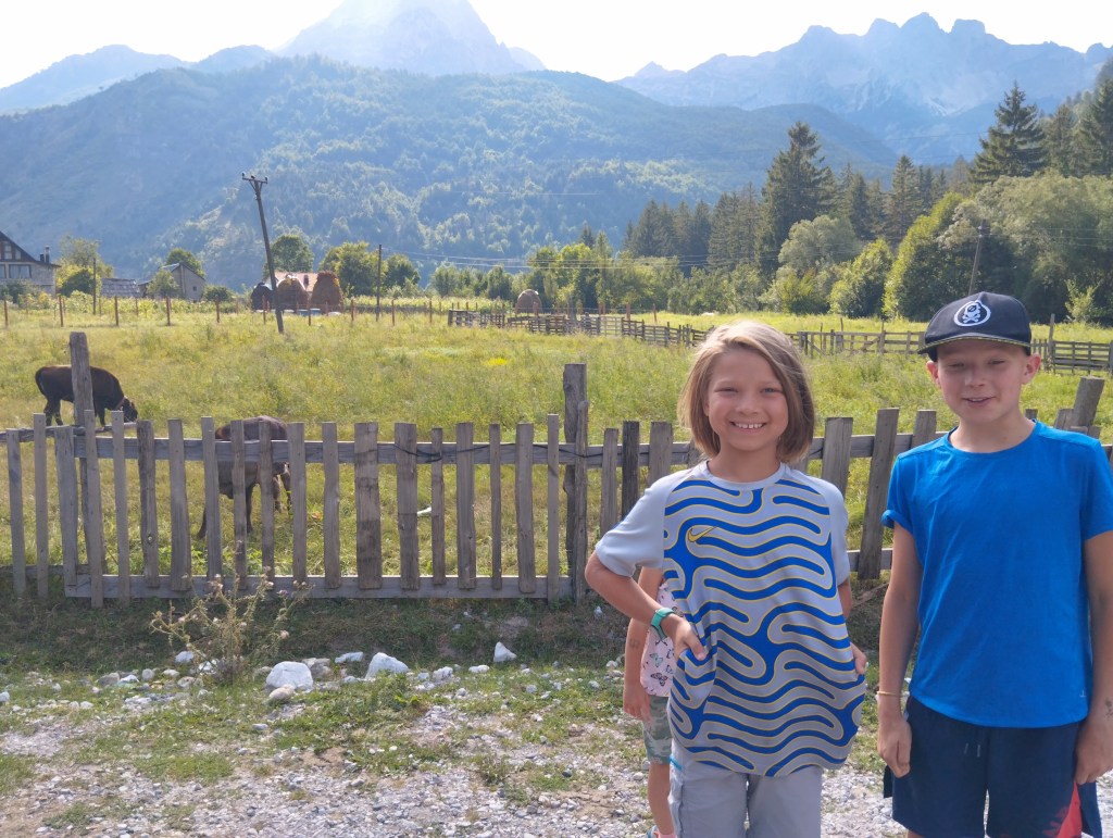 Jak już wiecie, postanowiliśmy zatrzymać się w sercu Gór Przeklętych* – w Parku Narodowym Doliny Valbony. Warunek był w zasadzie tylko jeden – nie idziemy nigdzie wysoko w górę. Z resztą już na pierwszy rzut oka widać, że te góry to nie przelewki. Wysokie, strzeliste, kamieniste wyglądały wspaniale, ale wędrówka po nich nie byłaby najłatwiejsza. Na wysokogórską wspinaczkę nie byliśmy przygotowani ani technicznie, ani psychicznie. Skoro nie planowaliśmy zdobywać szczytów, mogliśmy skupić się na otaczającej nas przyrodzie. Zielone polany, płynąca rzeka i widok na okoliczne wzniesienia sprawiły, że czuliśmy się jak w bajce. Już same widoki z dołu doliny dostarczały bardzo miłych górskich wrażeń.