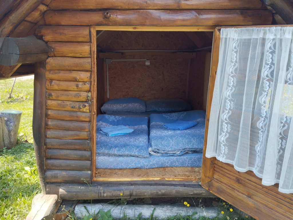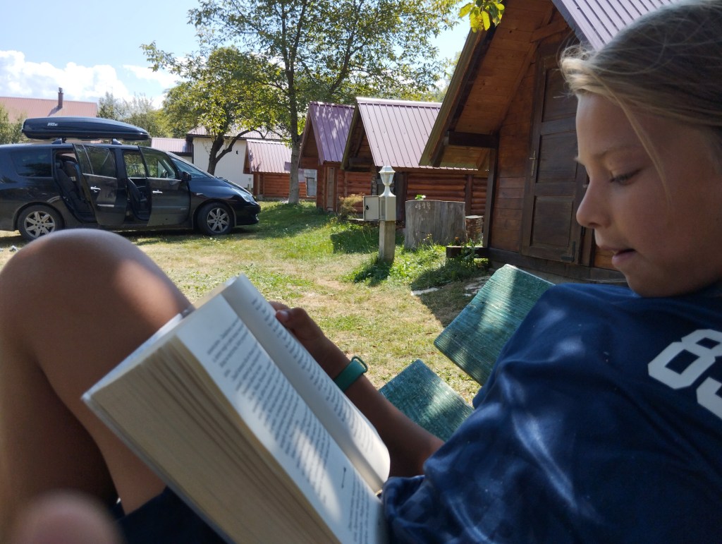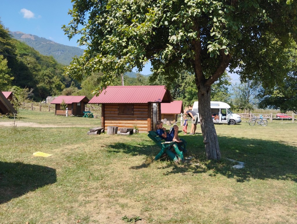 Także choć nasza dalsza droga biegnie przez Serbię, musimy wyjechać z Kosowa i przenocować w sąsiedniej Czarnogórze. Trafiamy na ciekawy kemping, który oprócz miejsc na namioty oferuje… chatki dla krasnoludków 😉 takie mini domki, czasem jedynie z drzwiami i łóżkiem.