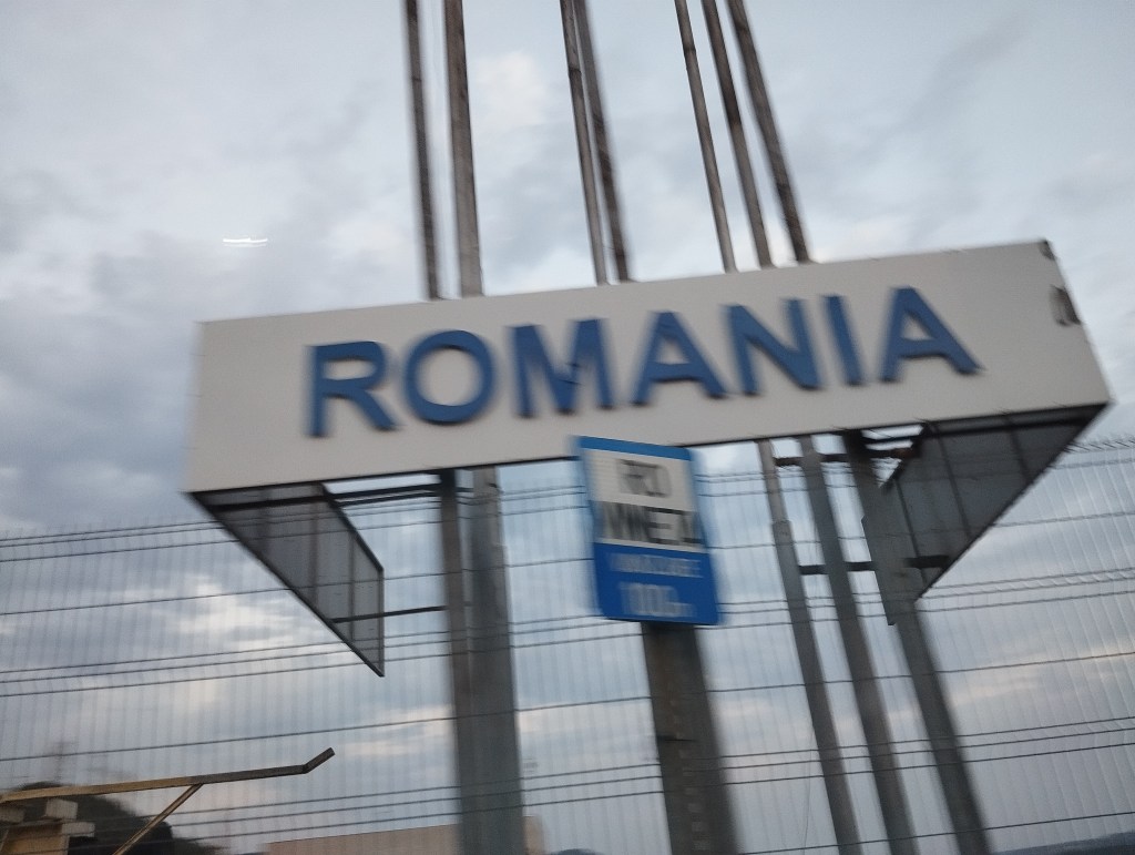 Późnym wieczorem, po ostatniej w trakcie naszej podróży kontroli granicznej i zmianie czasu o godzinę(!?) przekraczamy rzekę i wjeżdżamy do Rumunii!